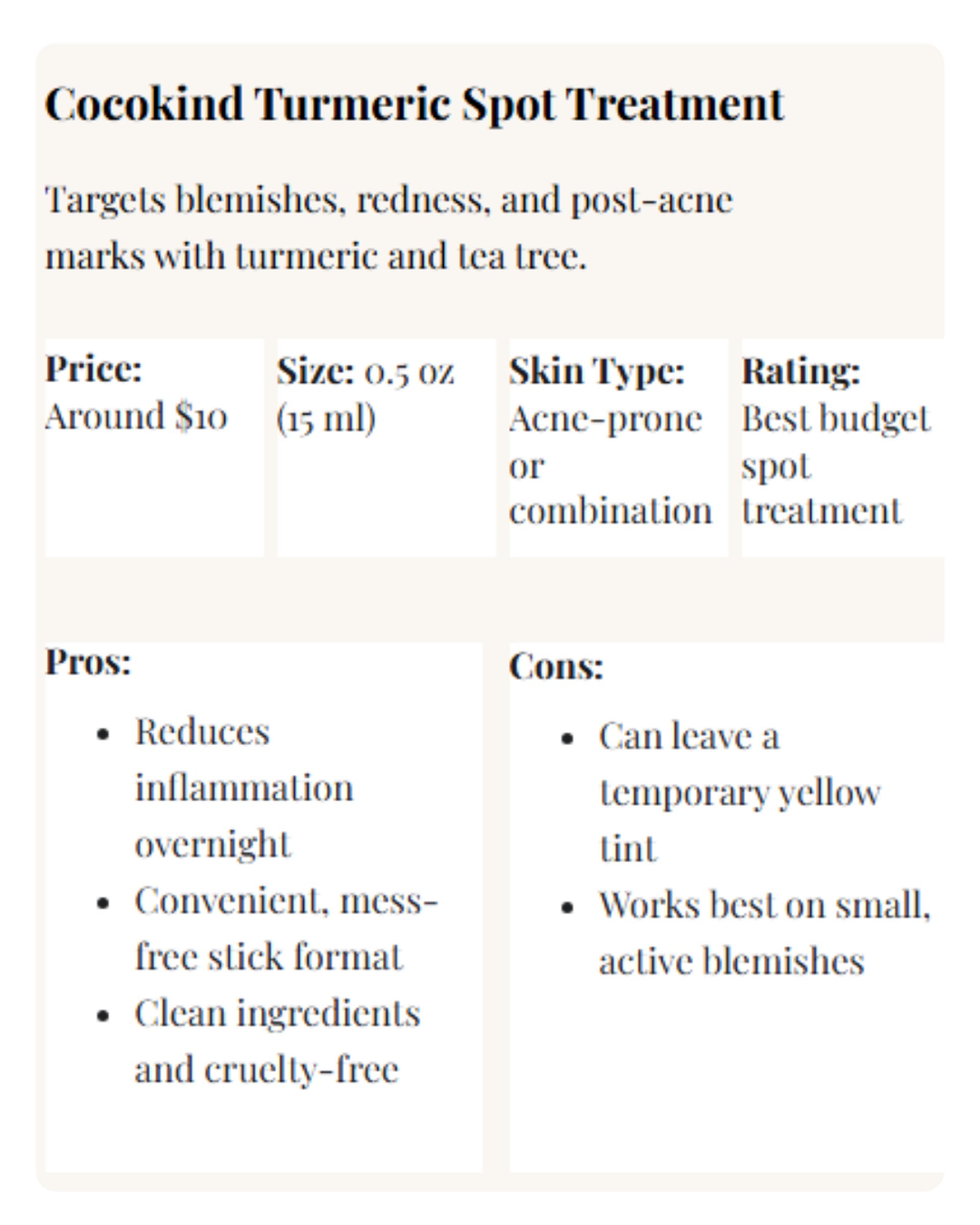 Targets blemishes, redness, and post-acne marks with turmeric and tea tree.