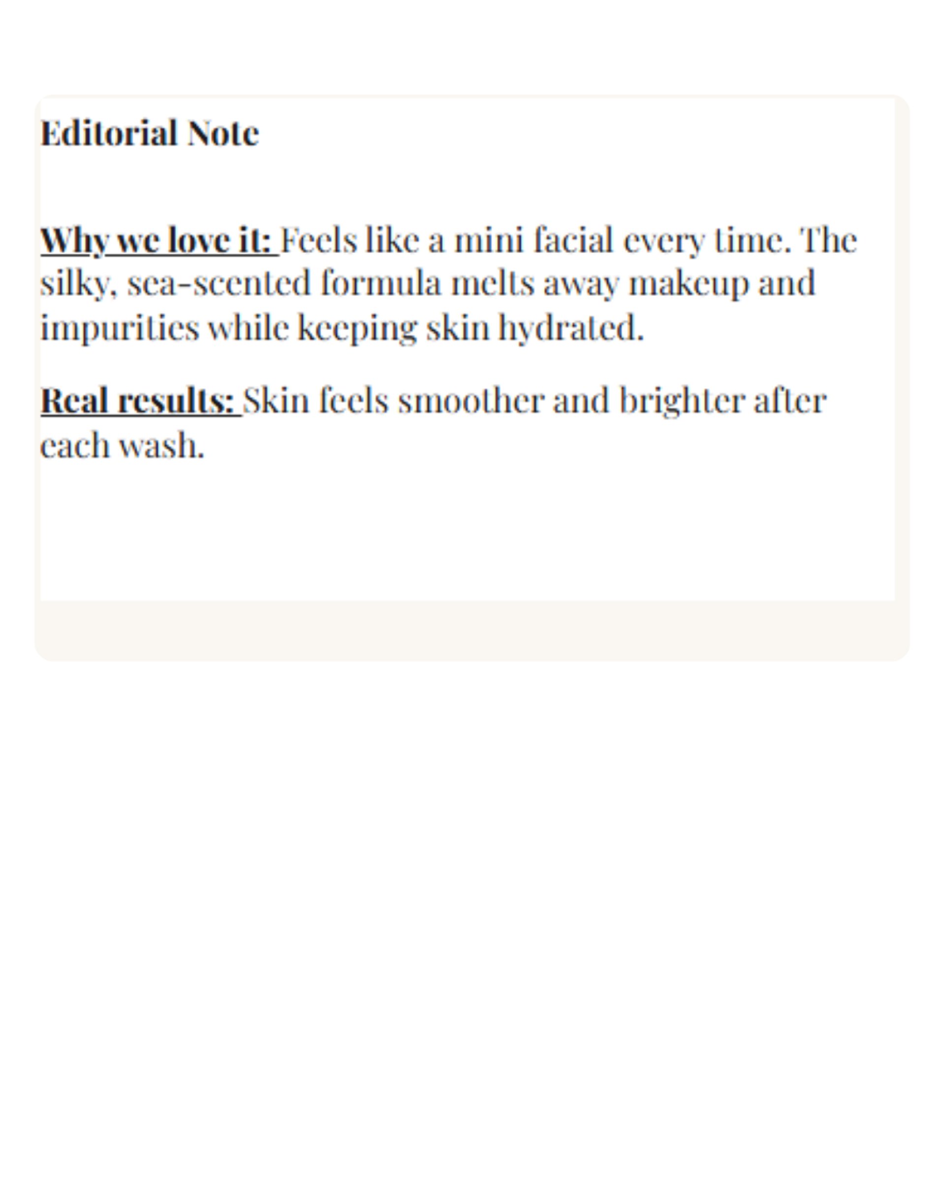 Why we love it: Feels like a mini facial every time. The silky, sea-scented formula melts away makeup and impurities while keeping skin hydrated.