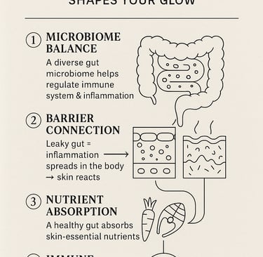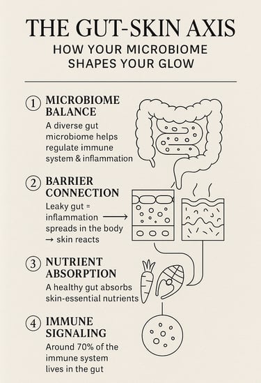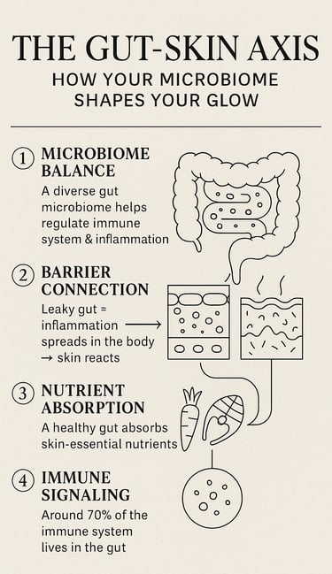 When your gut is inflamed, your skin mirrors it. Scientists call it the gut–skin axis — one ecosystem, two surfaces.