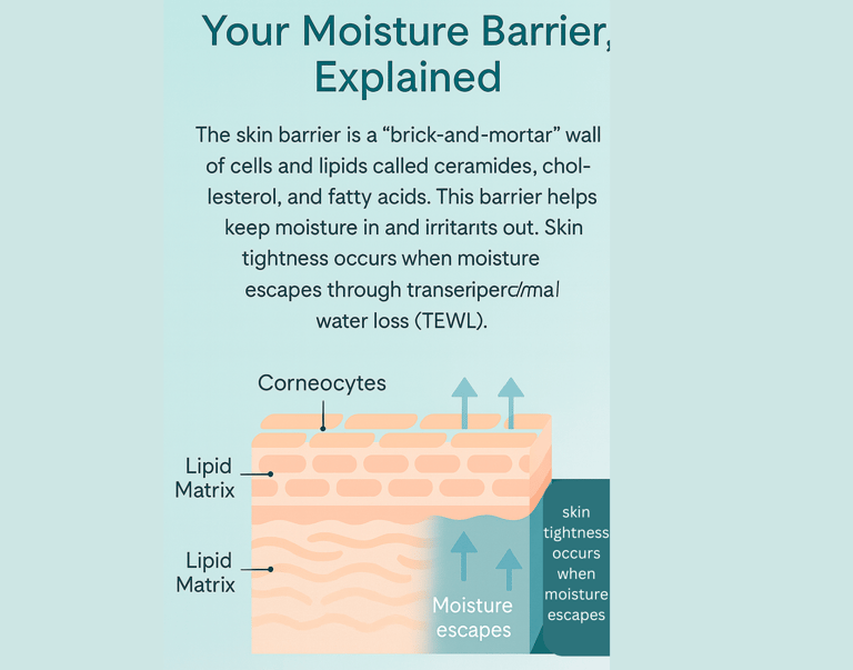That’s why your skin feels tight after cleansing — it’s literally dehydrating itself through a process called Trans-Epidermal Water Loss (TEWL).