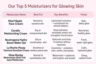 This structured approach ensures that our recommendations are not just popular picks — but moisturizers that genuinely improve radiance, hydration, and overall skin health.