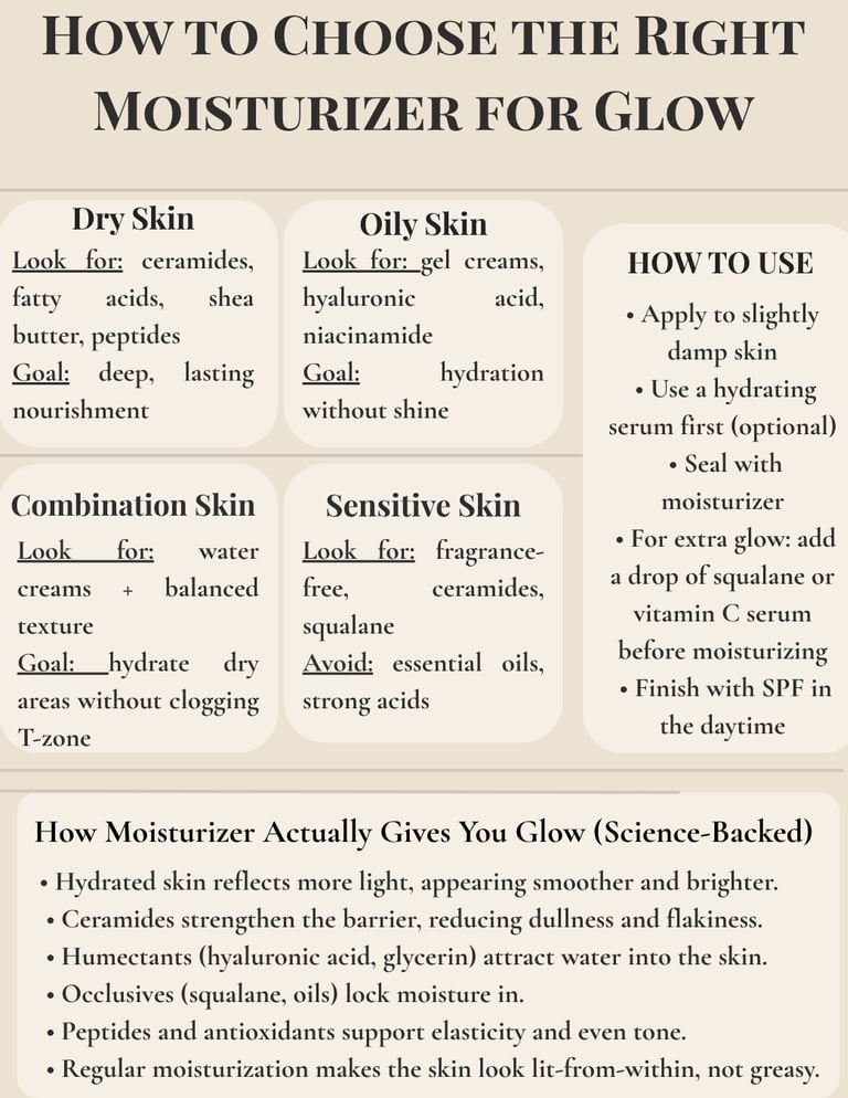 Moisturizer is the step that turns good skin into glowing skin. The right formula locks in hydration, supports your barrier, and adds instant radiance. Below, you’ll find top picks for glowing skin — plus how to choose the right one for your skin type.